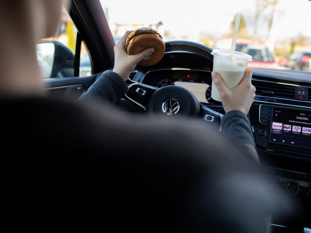 Nicht nur das Smartphone kann beim Autofahren stark ablenken. Auch Essen, Trinken oder das Tasten nach heruntergefallenen Dingen gehören dazu. Ebenso ziehen laute oder emotional aufgeladene Gespräche mit Mitfahrern oder auch zwischen den Mitfahrern viel Aufmerksamkeit vom Fahren ab. Selbst das Telefonieren mit Freisprecheinrichtung und das Eingeben des Fahrtziels per Spracheingabe kann stark ablenken. Für fordernde Telefonate oder die Navi-Programmierung sollte man daher besser anhalten.