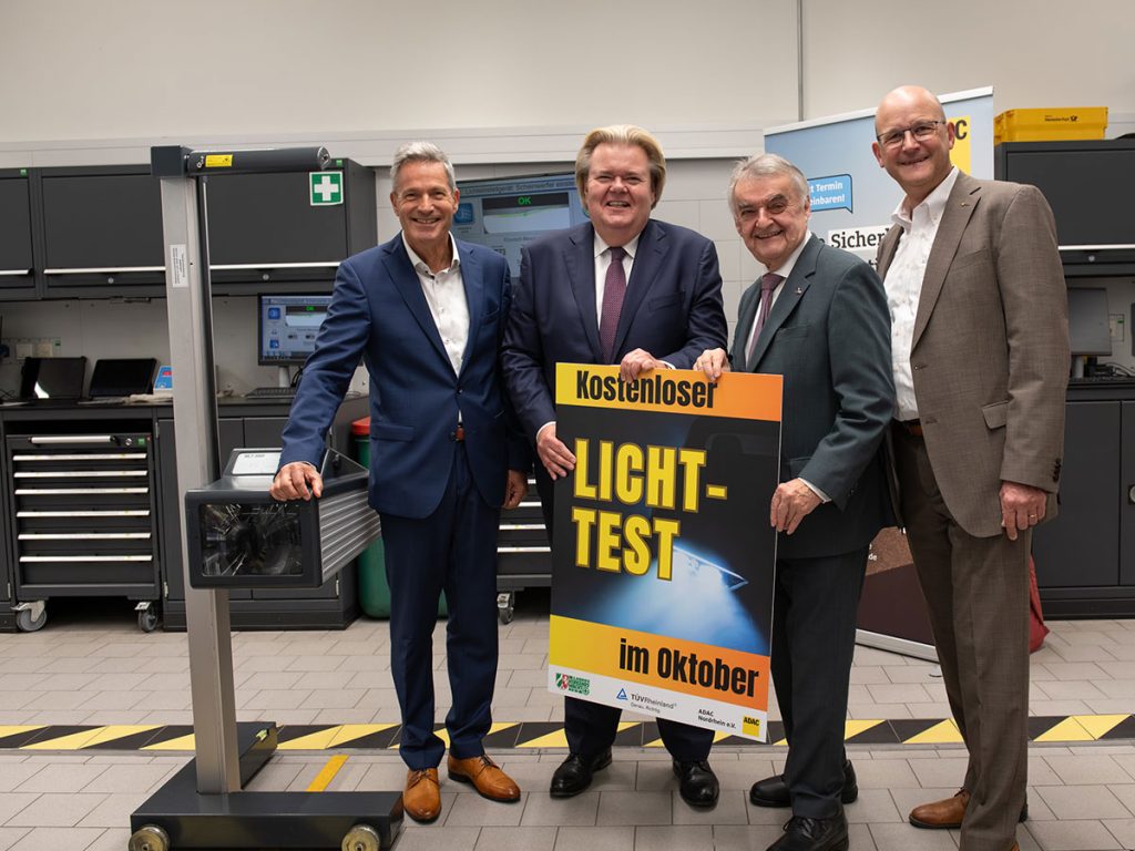 Wenn die Tage kürzer werden und das Wetter unbeständiger wird, können Autofahrer die Beleuchtung ihrer Fahrzeuge in Kfz-Werkstätten sowie bei Prüfstationen und -zentren von ADAC und TÜV prüfen lassen. Die Landesverkehrswacht NRW, der Verband des Kfz-Gewerbes NRW, der TÜV Rheinland und der ADAC in NRW rufen auch dieses Jahr gemeinsam dazu auf, dieses kostenfreie Angebot in Anspruch zu nehmen.